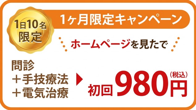 【HP限定 問診+手技療法+電気治療 初回980円】