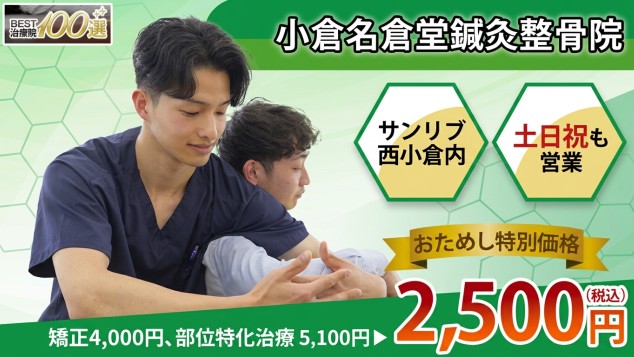 小倉名倉堂鍼灸整骨院へようこそ。予約はこちらからお願いいたします。