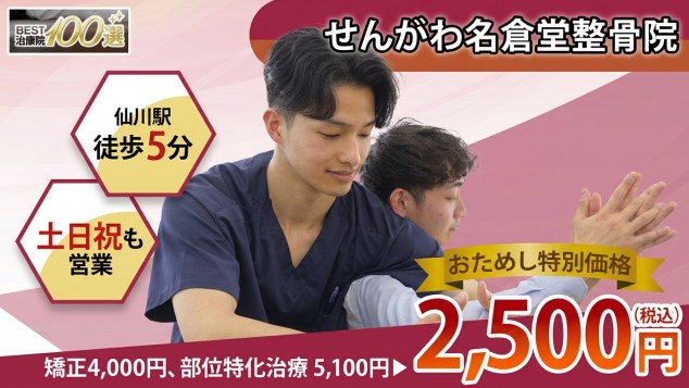 名倉式骨盤矯正 通常4,000円〜▶初回2,500円(税込)