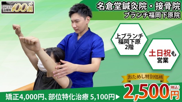 名倉堂鍼灸院・接骨院 ブランチ福岡下原院へようこそ。予約はこちらからお願いいたします。
