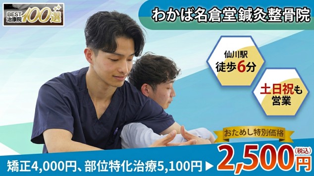 名倉式骨盤矯正 通常4,000円〜▶初回2,500円(税込)